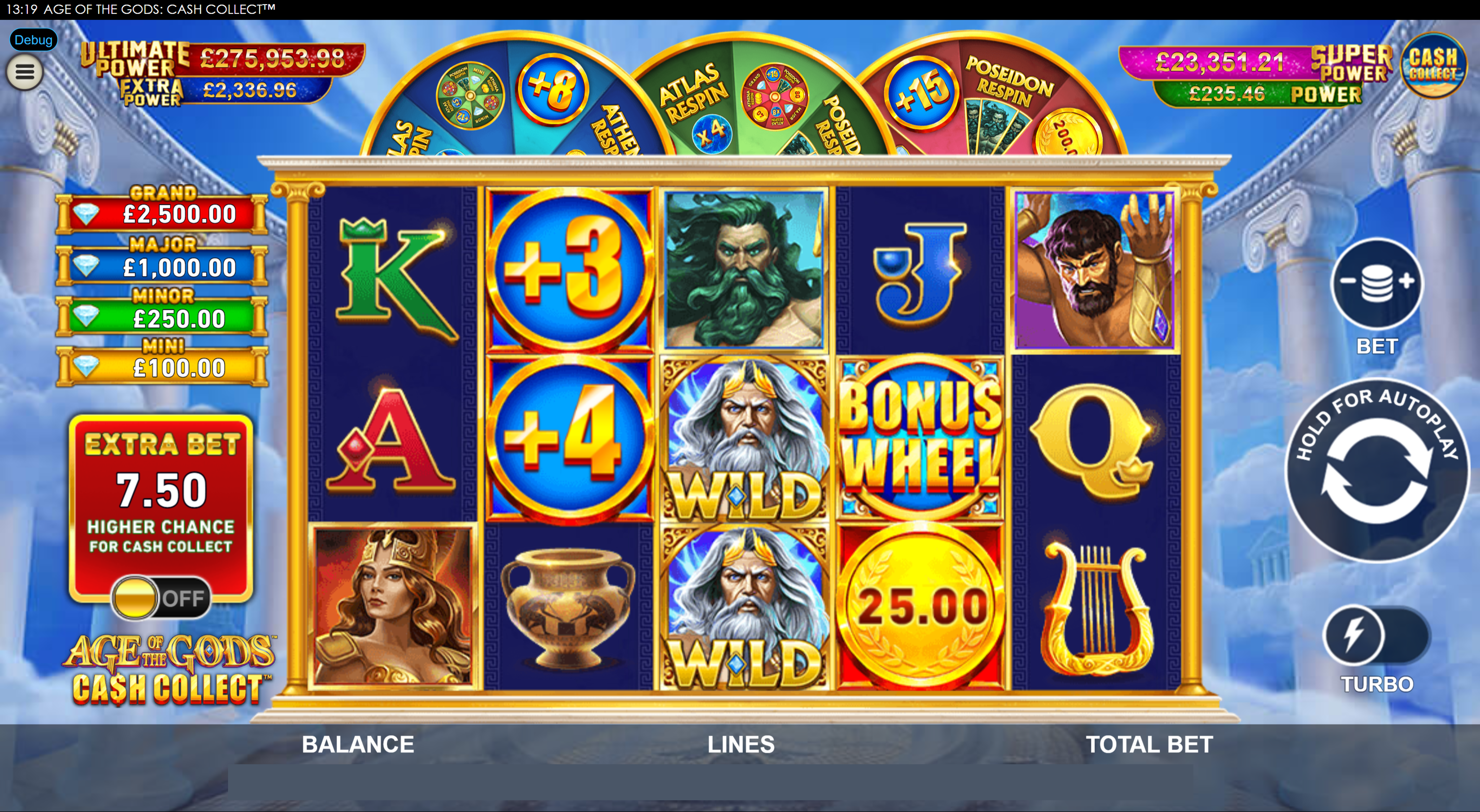 Proven Cash Collect™ logic set in the world of Age of the Gods™ brings guaranteed entertainment and an extra level of excitement with the progressive jackpots.