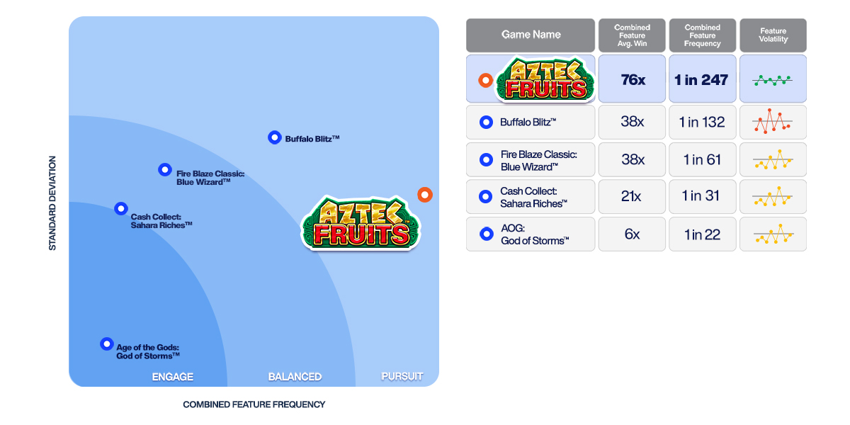 Features and wins occur less frequently in Pursuit games, but are typically more lucrative when they do; as such, these higher volatility slots appeal to more experienced players happy to wait for feature rounds and big wins.
