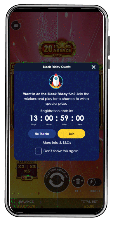 Encourage gameplay and extended game sessions with a set of themed missions, each offering additional prizes such as Free Spins and Cash Bonuses upon completion. Players finish tasks in any order to collect their rewards.