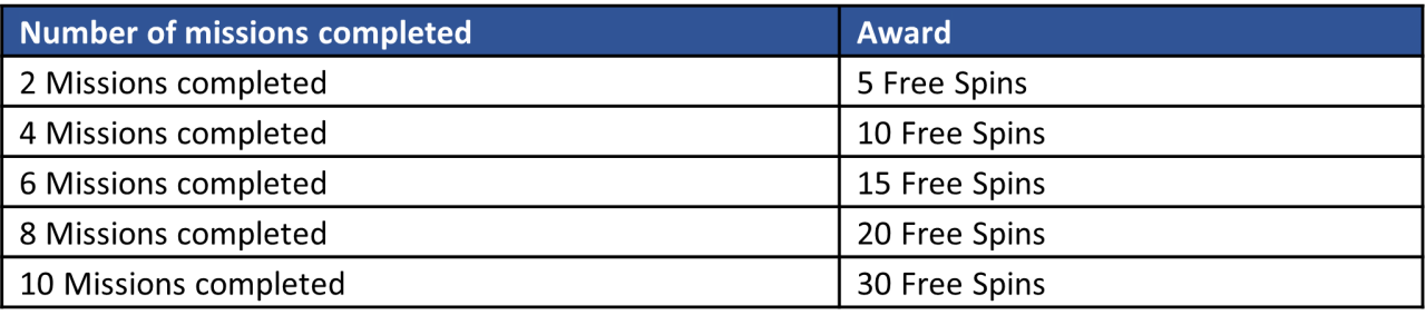 Every mission completed will trigger a prize.