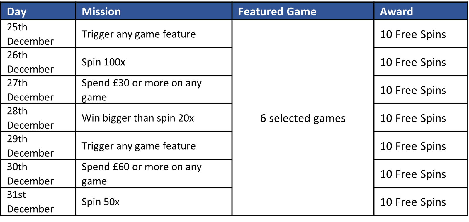Give players reason to return during the festive period and let them explore great selection of games.