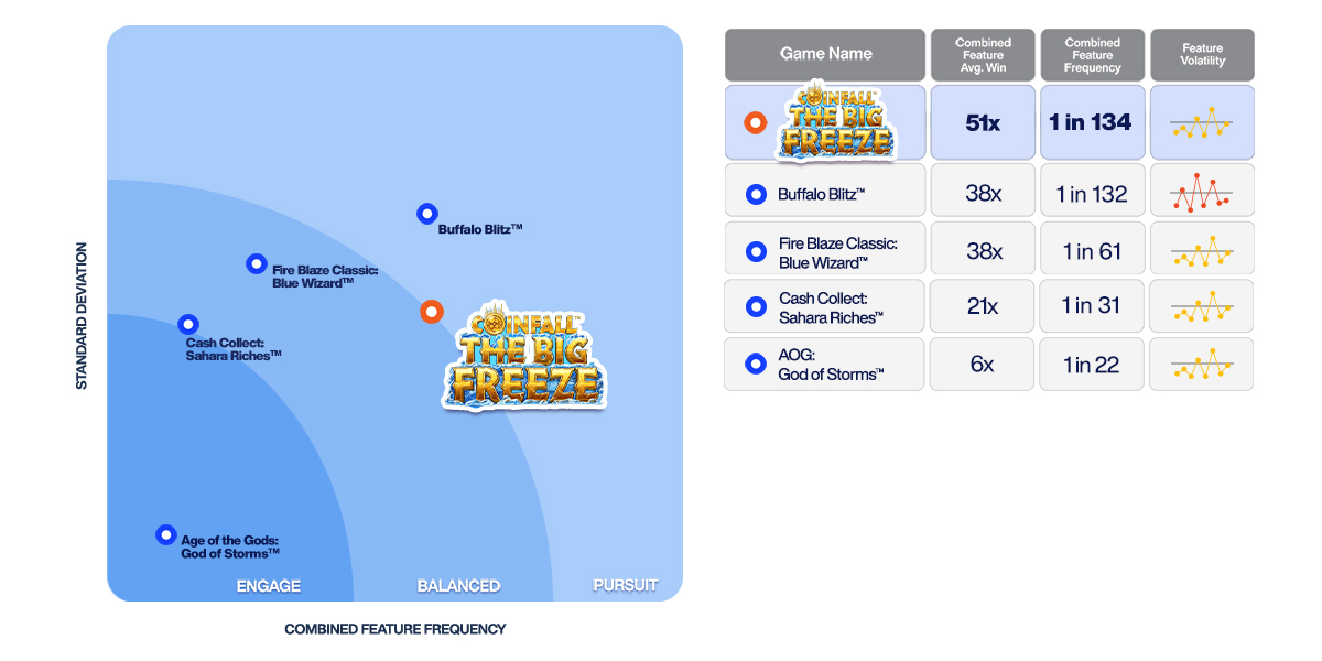 Features and wins occur less frequently in Pursuit games, but are typically more lucrative when they do; as such, these higher volatility slots appeal to more experienced players happy to wait for feature rounds and big wins.