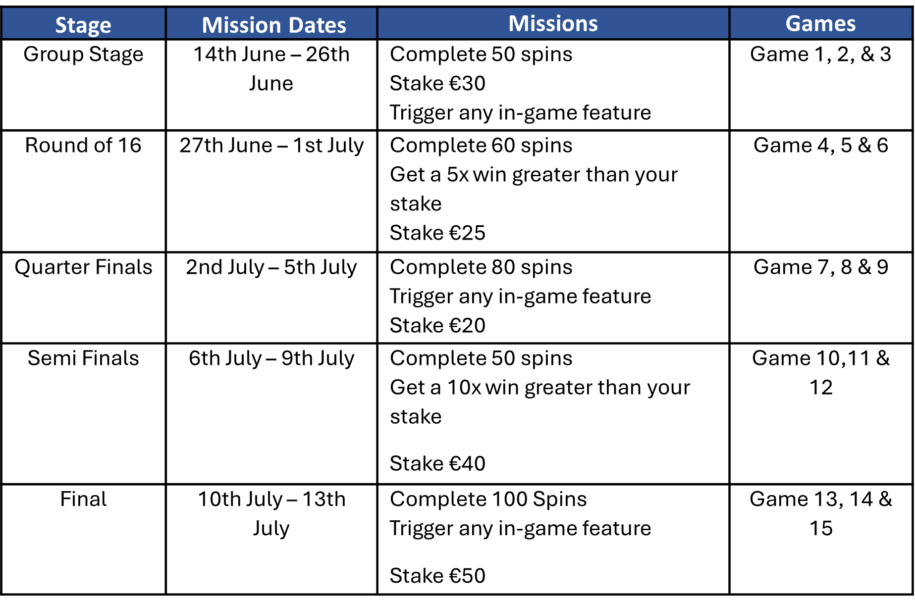 For every 12 Missions completed, players will be rewarded with 25 Free Spins.