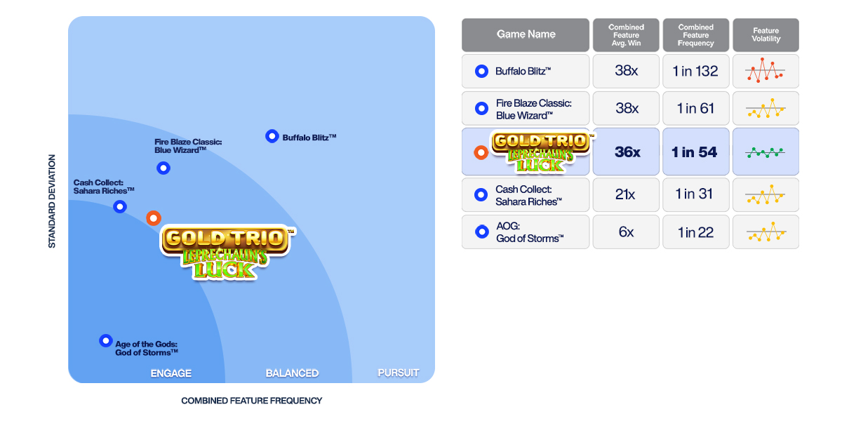 Games with a more medium volatility feel, usually offering some feature variety and less frequent, but generally bigger, wins than Light games. Balanced games are likely to appeal to slightly more experienced players, offering less playing time for the same money, but a greater chance of bigger wins.