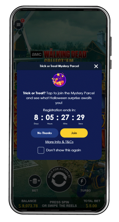 Celebrate Halloween with the Trick or Treat Mystery Parcel! Parcels containing rewards like Free Spins and Cash Bonuses are passed around until they open at random.