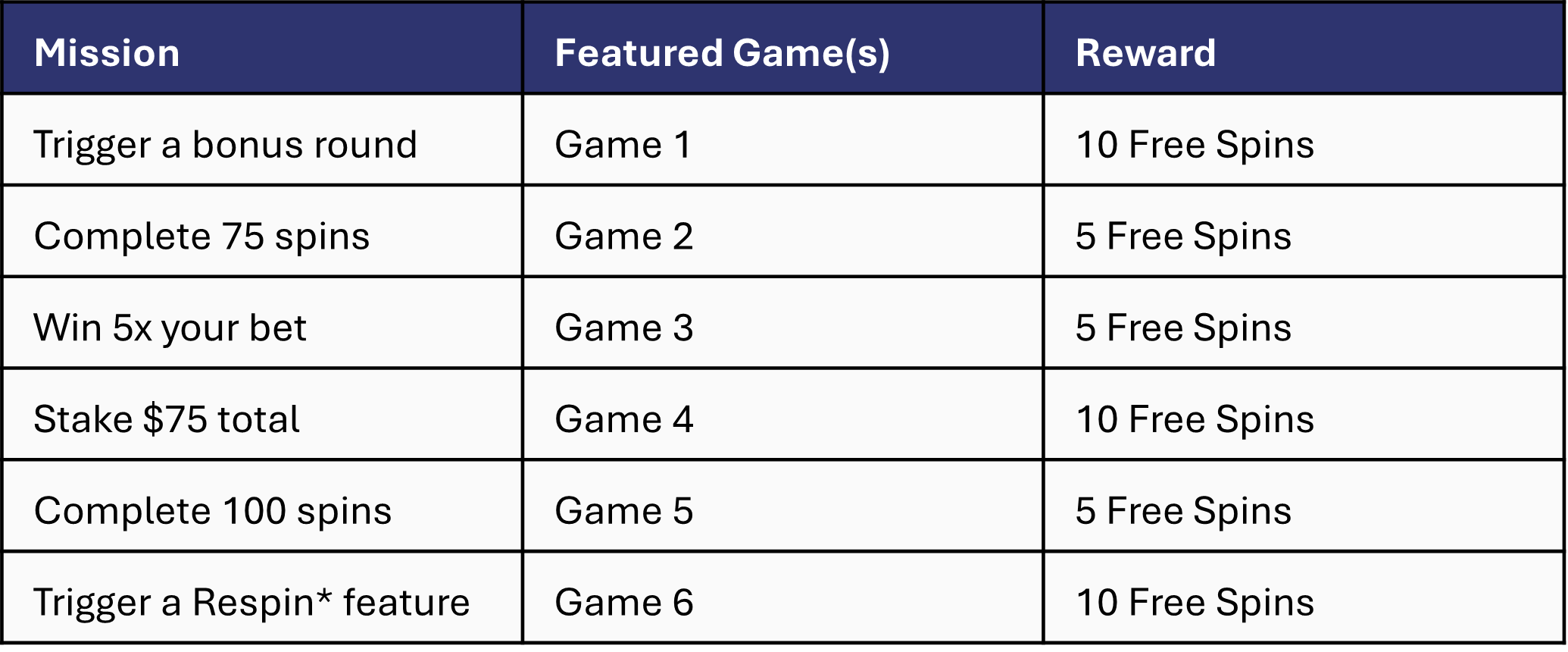 o Double Points on selected new or top performing seasonal games to boost engagement.