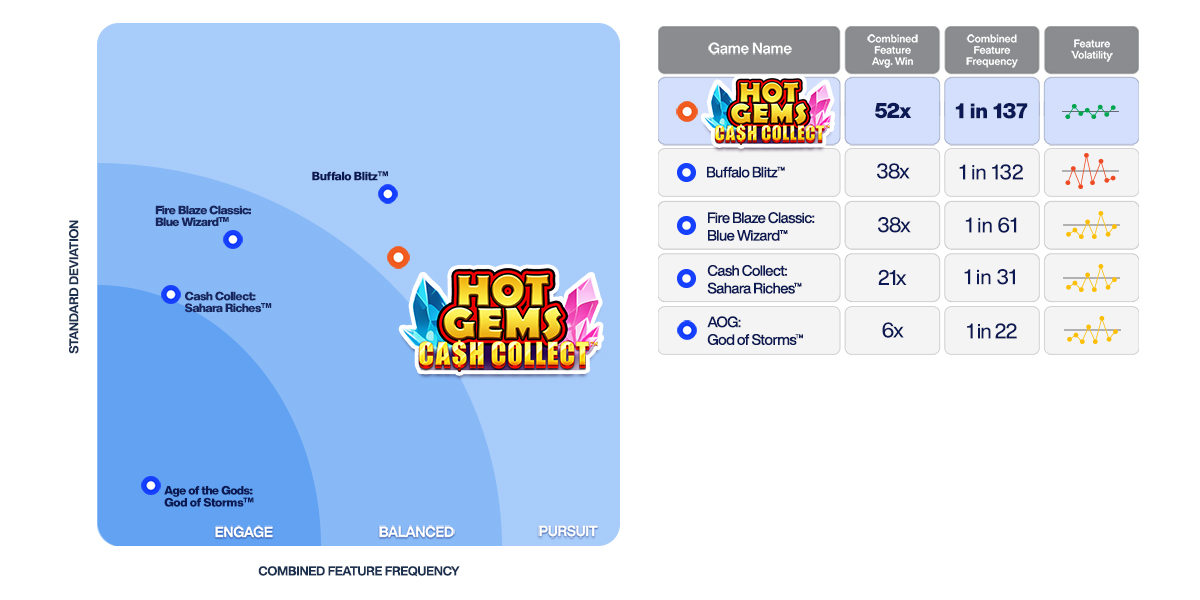 Features and wins occur less frequently in Pursuit games, but are typically more lucrative when they do; as such, these higher volatility slots appeal to more experienced players happy to wait for feature rounds and big wins