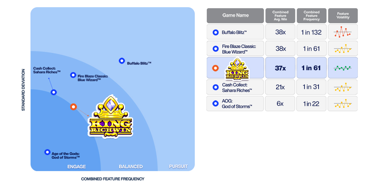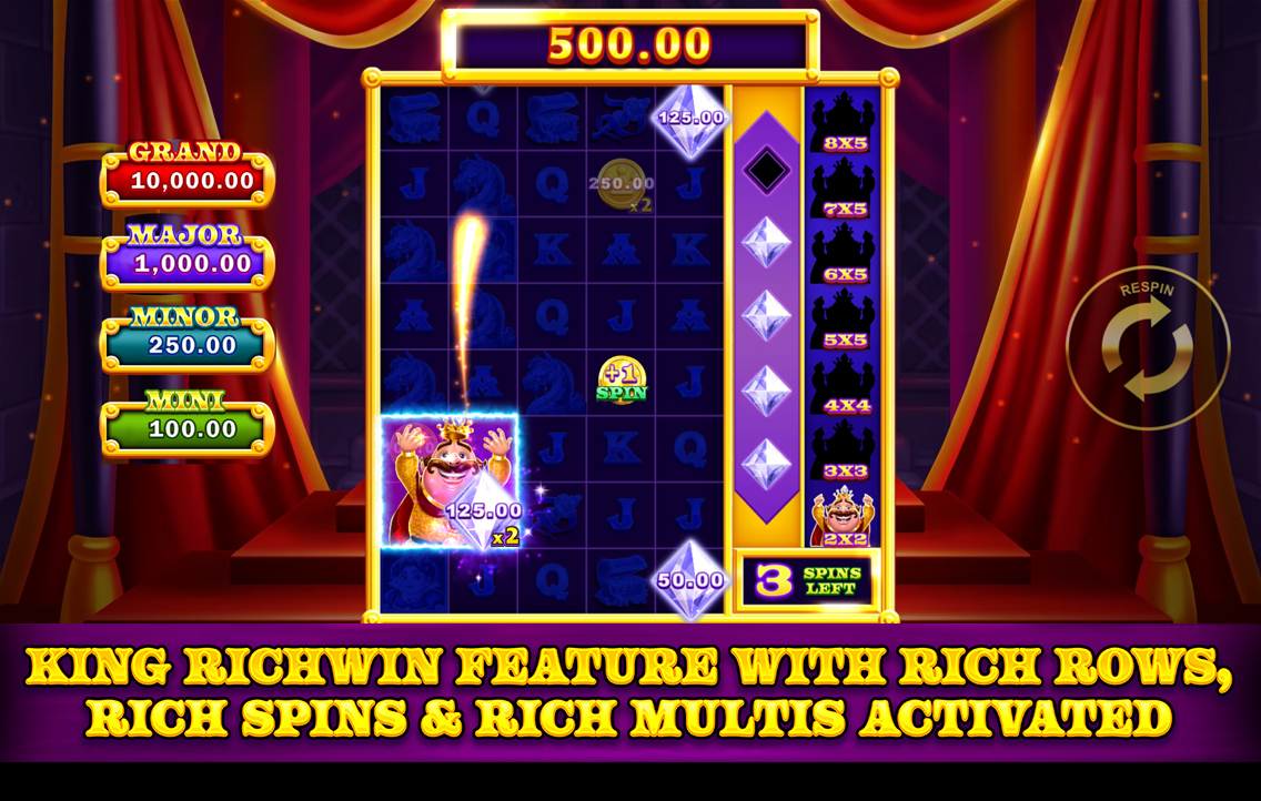 • King Richwin Bonus – Mega symbol instantly collects prizes and can grow to win more