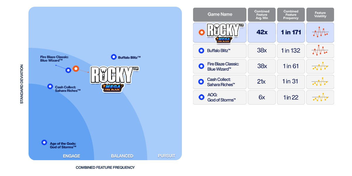Lower volatility games offering smaller, but more regular wins, with a range of and/or frequently triggering features. These games are typically acquisition titles, designed to create variety and excitement for new players.
