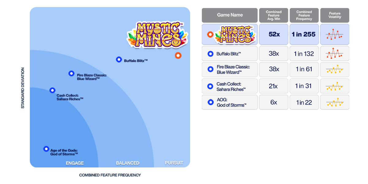 Features and wins occur less frequently in Pursuit games, but are typically more lucrative when they do; as such, these higher volatility slots appeal to more experienced players happy to wait for feature rounds and big wins.