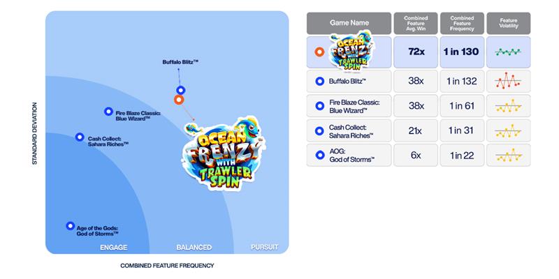 Features and wins occur less frequently in Pursuit games, but are typically more lucrative when they do; as such, these higher volatility slots appeal to more experienced players happy to wait for feature rounds and big wins.