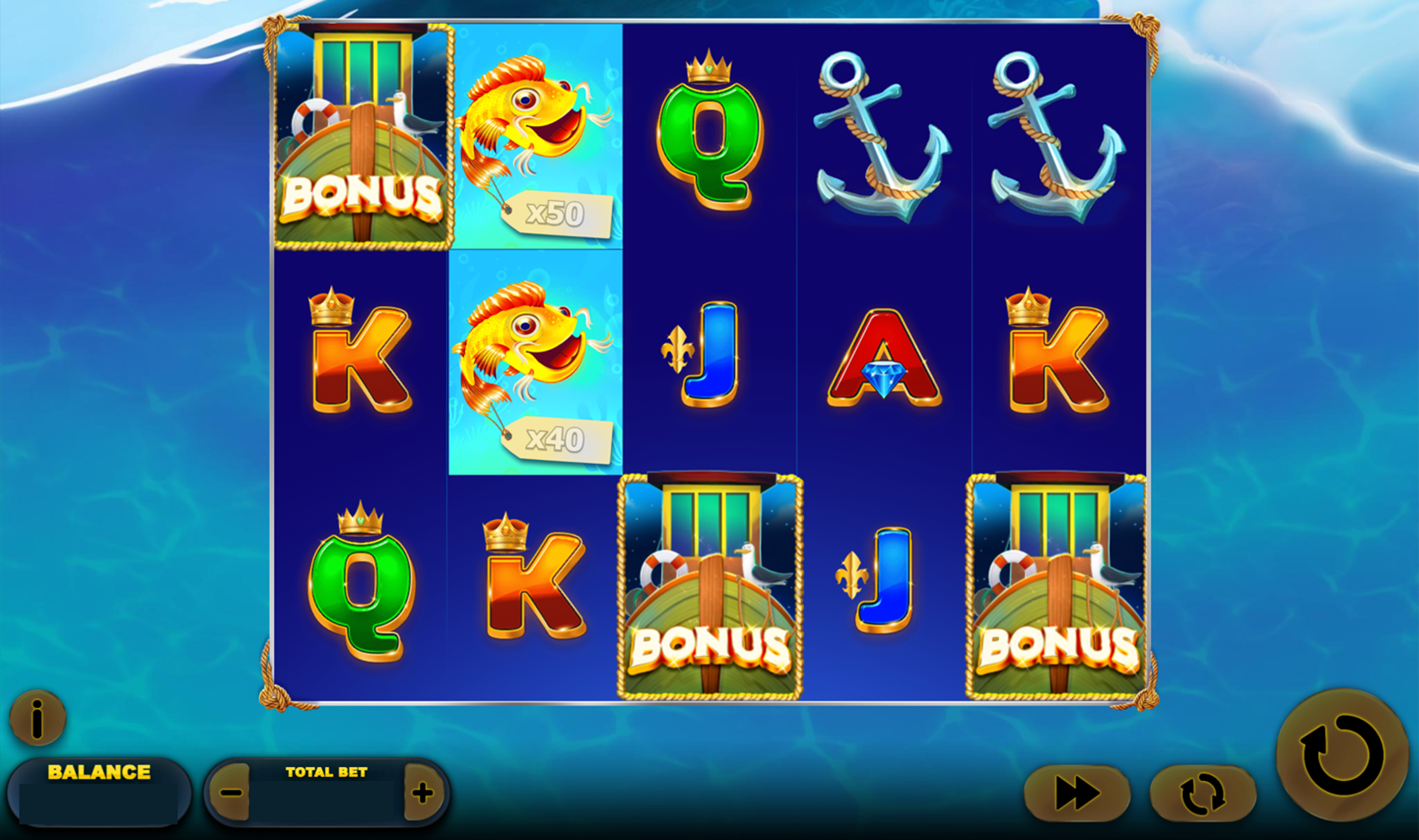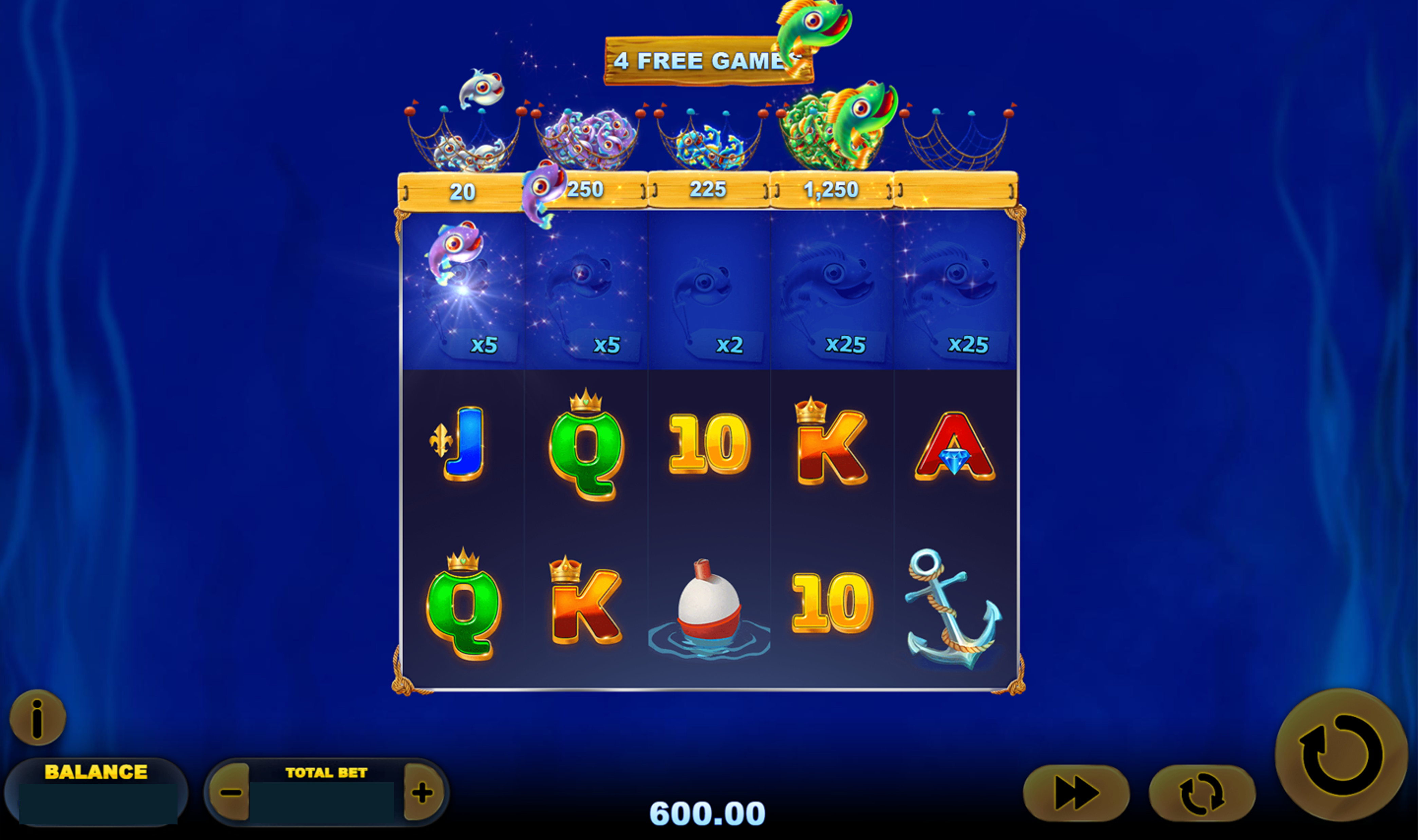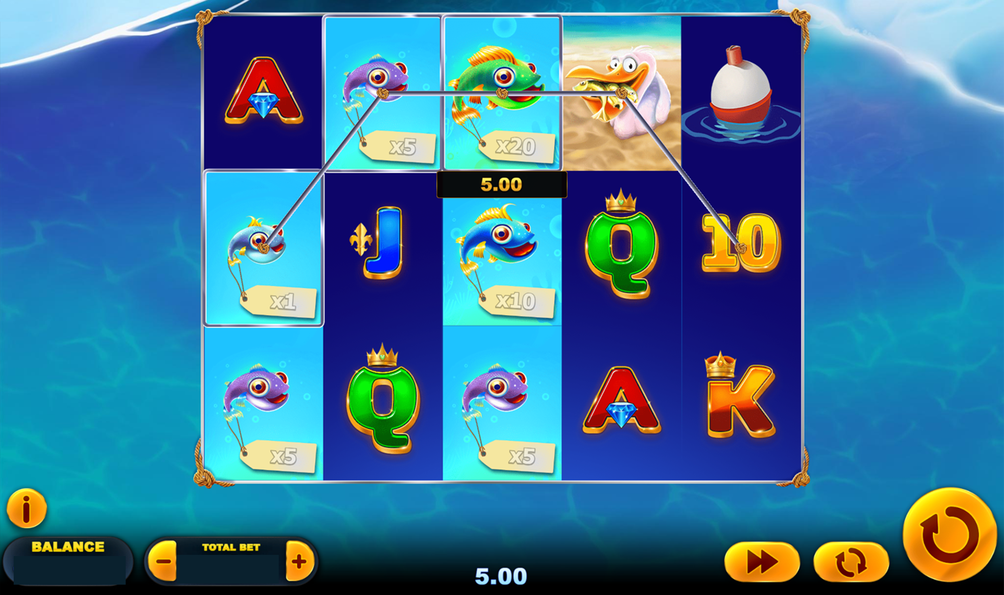 Win up to 20 Free Spins, where any Fisherman in view will collect every fish to him for massive instant cash prizes, but any fish that are not collected, get instead added to the nets.