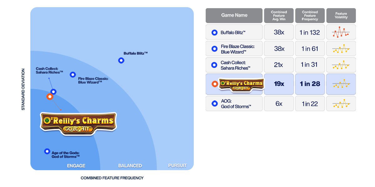 Lower volatility games offering smaller, but more regular wins, with a range of and/or frequently triggering features. These games are typically acquisition titles, designed to create variety and excitement for new players.
