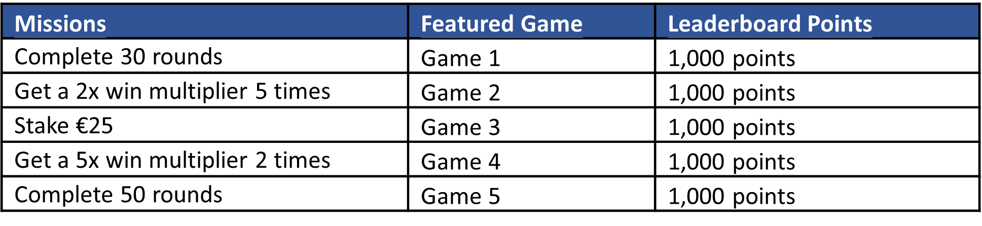 Players can boost their points score by completing any of the below missions.