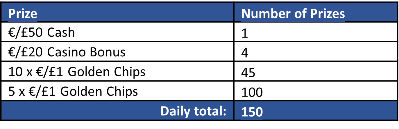 Set up as a daily campaign, to offer players 1 top prize per day.