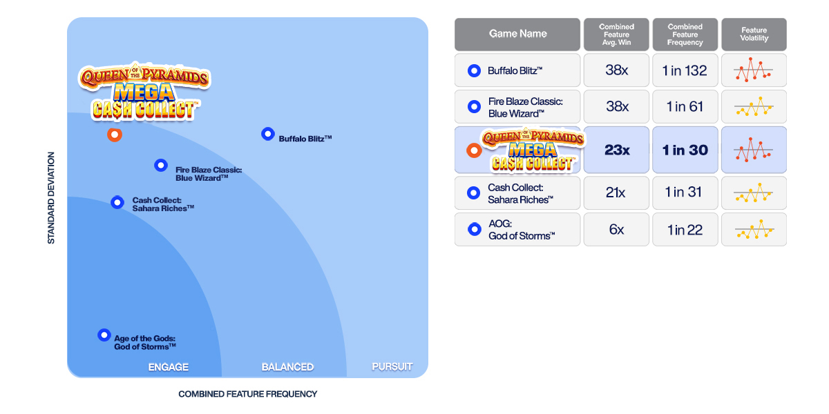Lower volatility games offering smaller, but more regular wins, with a range of and/or frequently triggering features. These games are typically acquisition titles, designed to create variety and excitement for new players.
