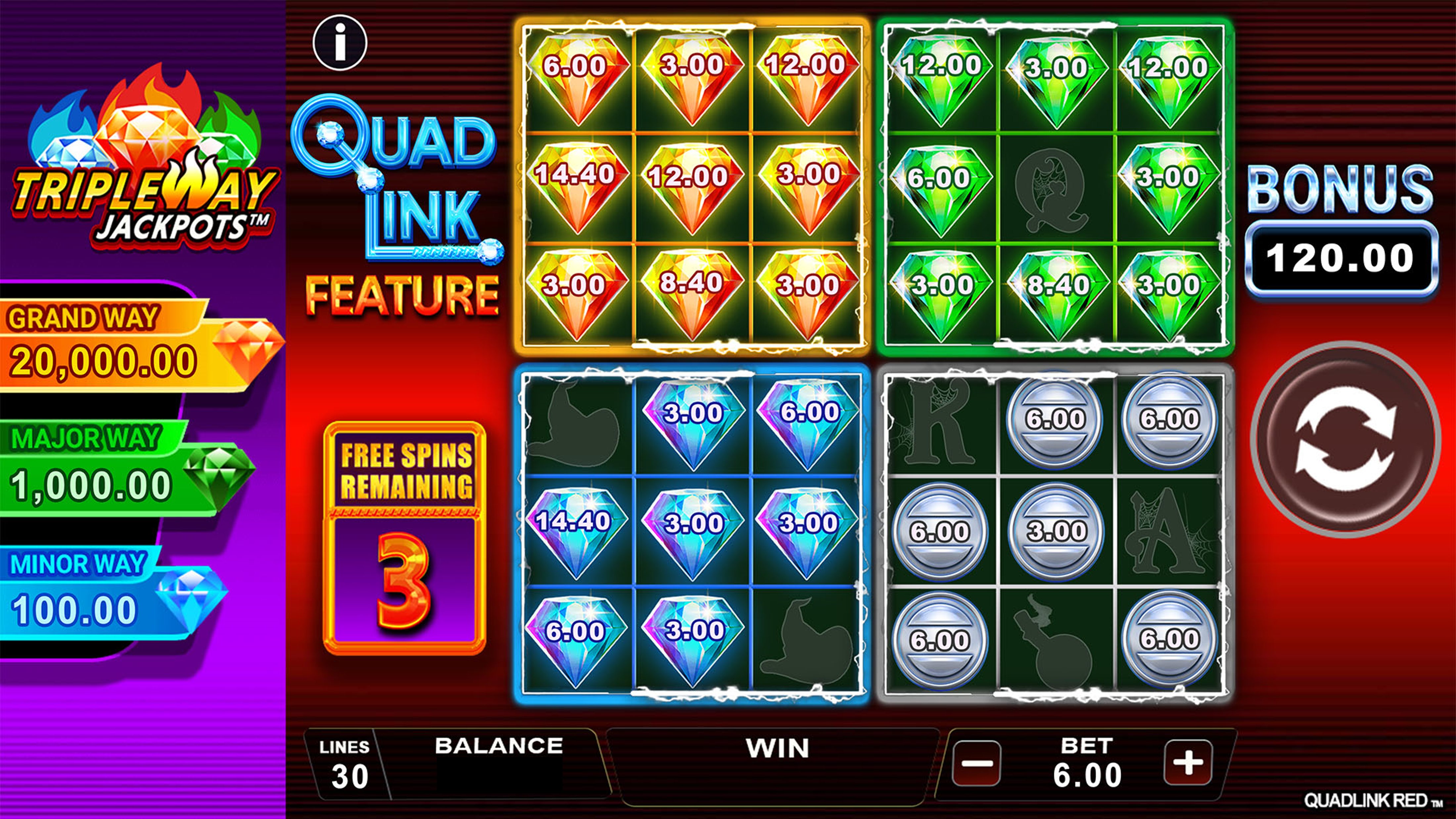 Five dazzling Diamond symbols trigger not one, not two, but four 3x3 Hold N' Spin arrays, each holding the secret to those coveted jackpots. Here’s the twist: fill any array and you’re in for a jackpot bonanza!