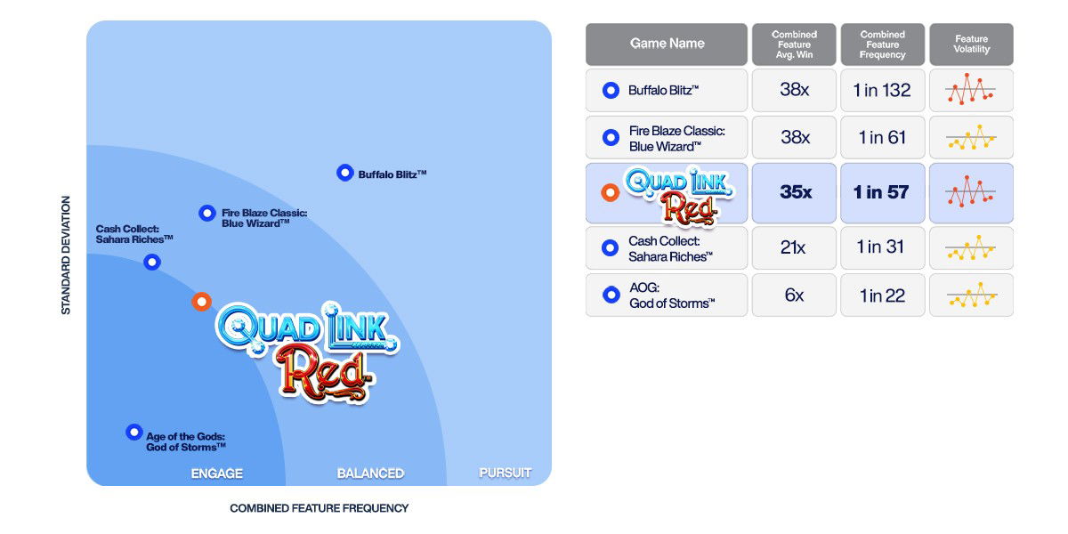 Lower volatility games offering smaller, but more regular wins, with a range of and/or frequently triggering features. These games are typically acquisition titles, designed to create variety and excitement for new players.