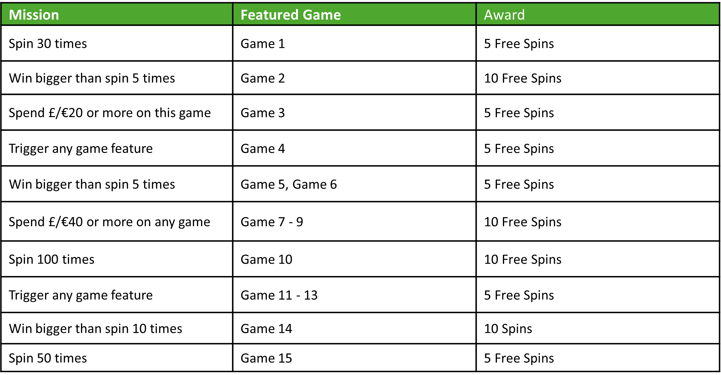 Set up exciting missions for your players and reward them with gleaming rewards once they complete them. What’s more, players will also have a chance to unlock a lucky Leprechaun’s scratch card for additional prizes!