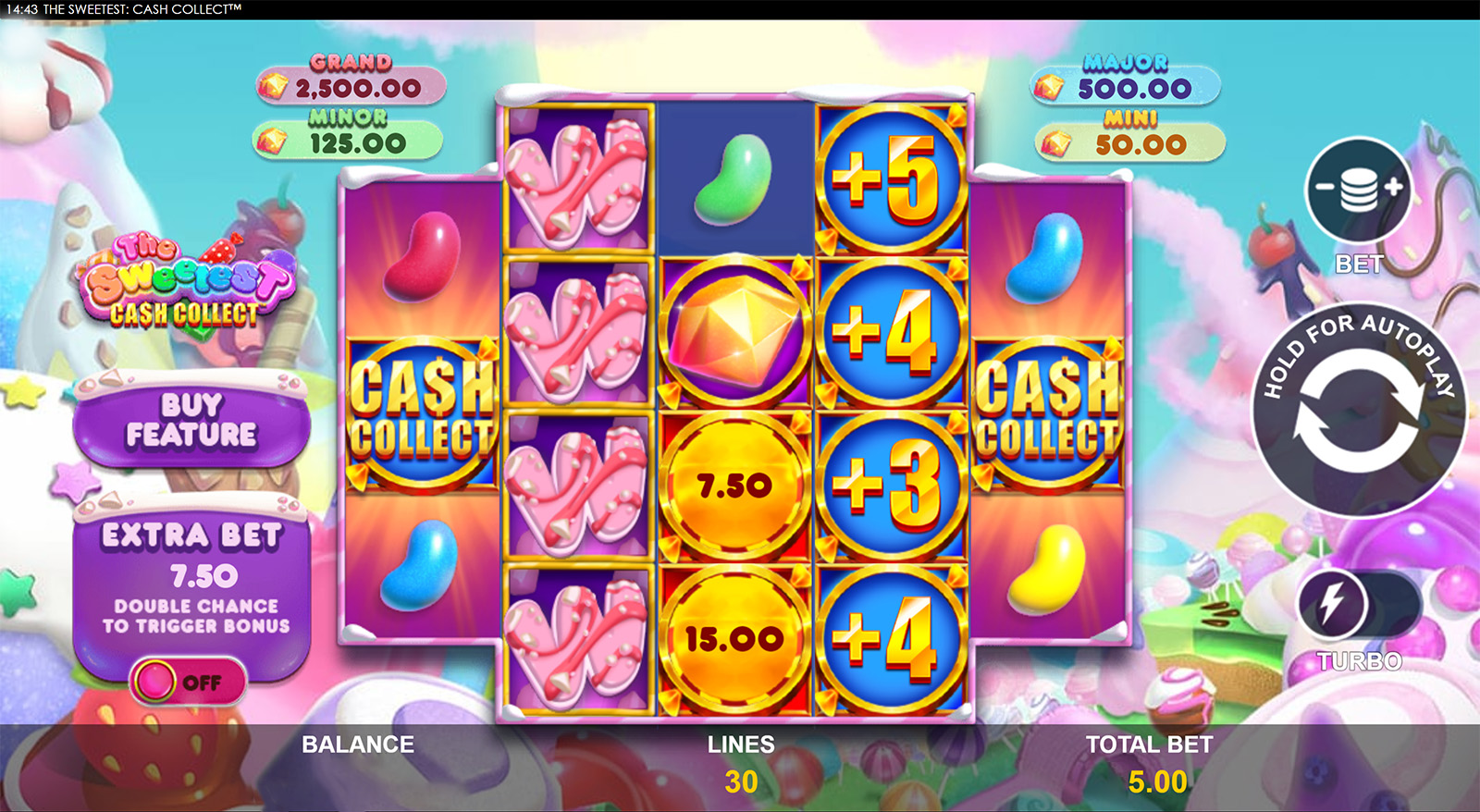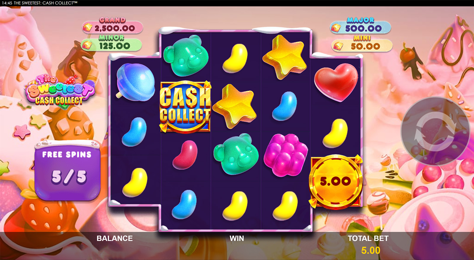 You can find sticky Cash Collect™ symbols during Free Games and a chance to land more than one Cash Collect™ symbol on a single spin. Watch out for the Marshmallow characters that can upgrade your cash prizes and Free Games.