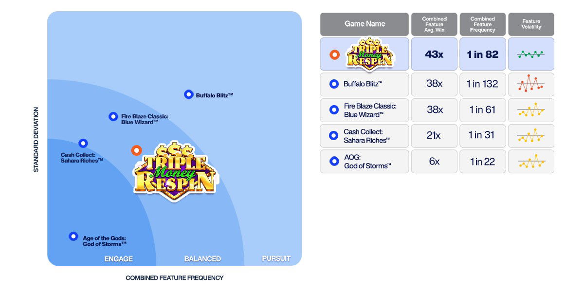 Lower volatility games offering smaller, but more regular wins, with a range of and/or frequently triggering features. These games are typically acquisition titles, designed to create variety and excitement for new players.