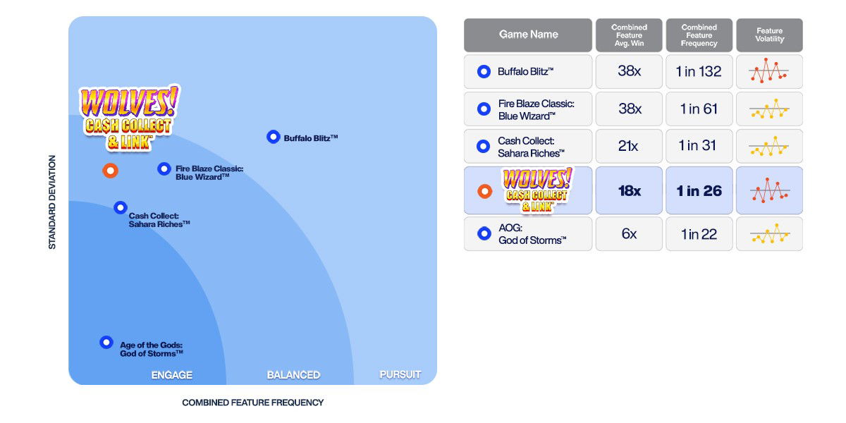 Lower volatility games offering smaller, but more regular wins, with a range of and/or frequently triggering features. These games are typically acquisition titles, designed to create variety and excitement for new players.